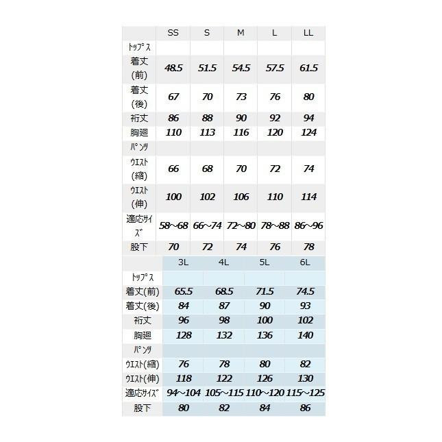 | サイズ | 3L トップス(着丈(前) :65.5/着丈(後) :84/裄丈:96/胸廻:128)パンツ(ウエスト(縮):76/ウエスト(伸):118/適応サイズ:94~104:股下:80)cm 個装サイズ:30×22.5×6cm |