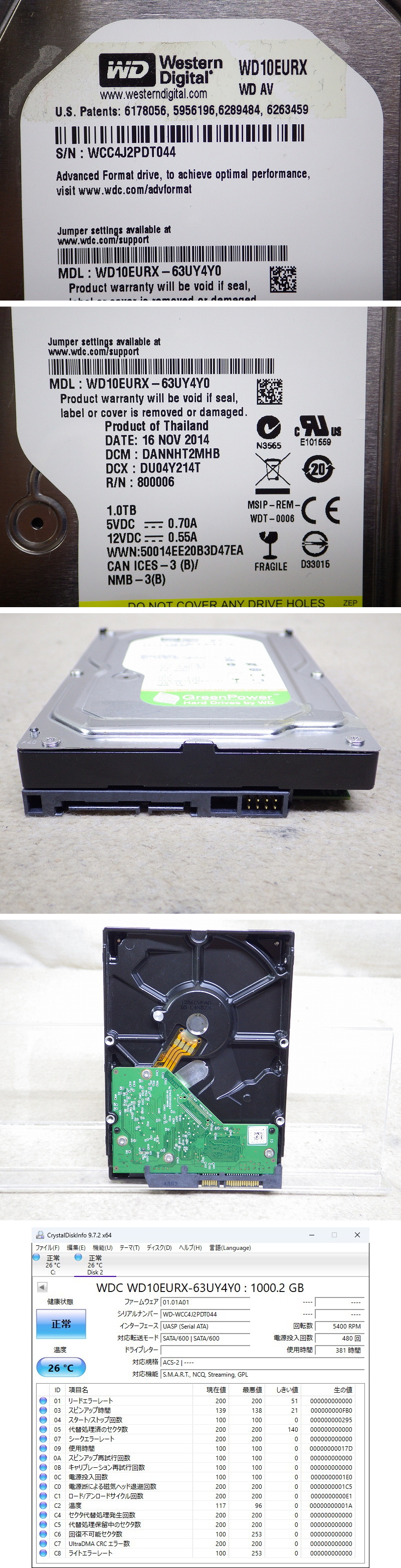 Kネま2365 WD 3.5インチ SATA 内蔵HDD 1TB WD10EURX-63UY4Y0 パソコン周辺機器 PCパーツ ハードディスク 收藏