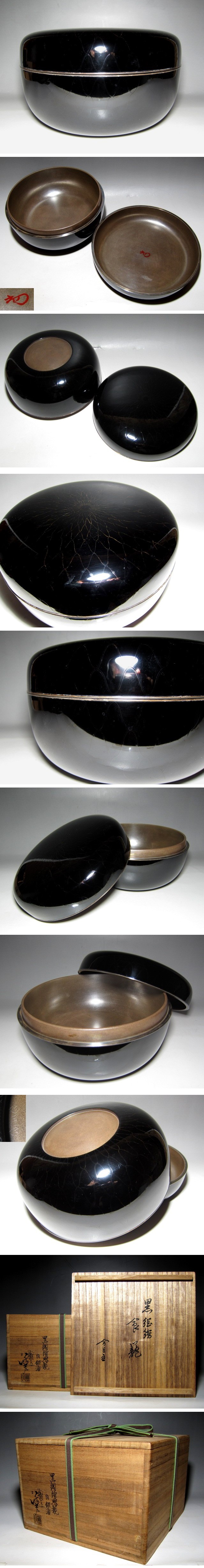 川端近左 黒網絵喰籠 内銀溜 裏千家十四代 淡々斎花押 v138 收藏