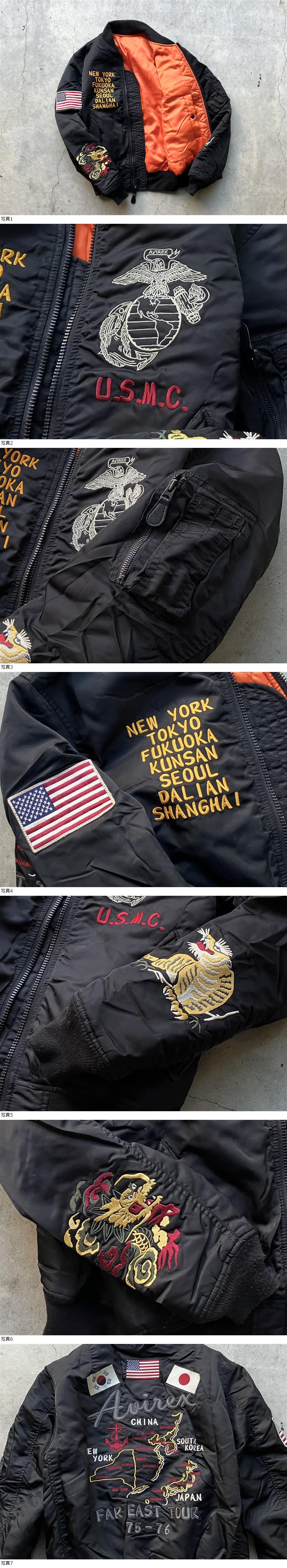 AVIREX MA-1フライトジャケット M アヴィレックス メンズ ブルゾン 中綿 刺繍 ワッペン カスタム スカジャン ベトジャン スタジャン 黒 收藏