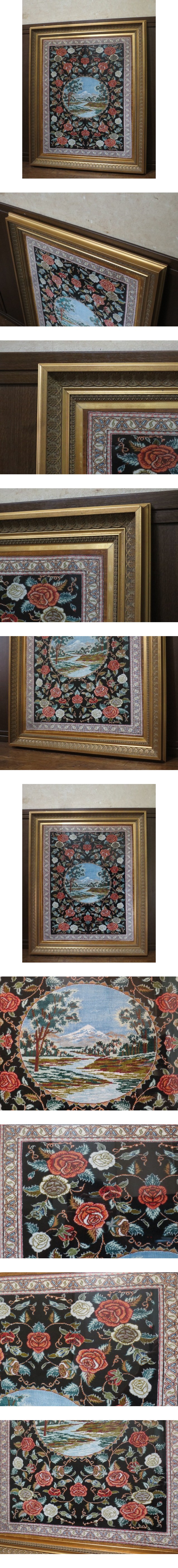 美品 最高級 手織り シルク100% イラン クム産 JOSCAA プレーベル 額装 ペルシャ 絨毯 タグ付き タトウ箱付き/カーペット/ラグ/美術品 收藏