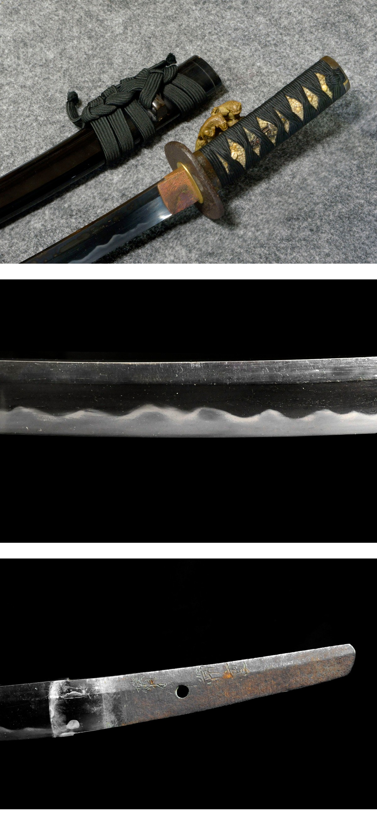 刃長:約44.4㎝反り:約1.2㎝刀重:約450g先幅:約2.0㎝元幅:約2.9㎝先重:約0.6㎝元重:約07㎝ 寸法はスケールを当てた約寸です。厳格な数値ではありませんので、参考値とお考え下さい。不明な点があば、入札前に質問してください。