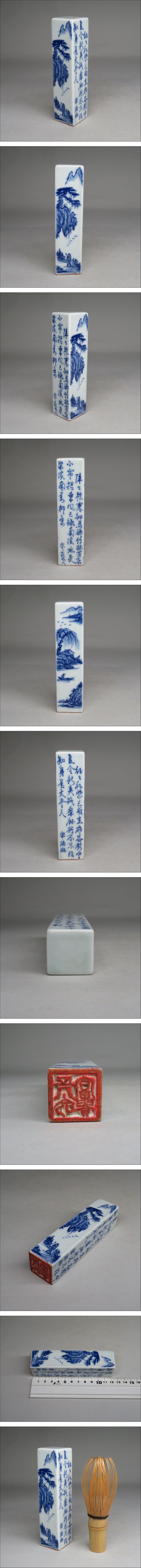 | 【東】 青花山水漢詩紋磁印鑑 印材 陶印材 書道具 文房具 中国美術/古美術・骨董品 | ||||