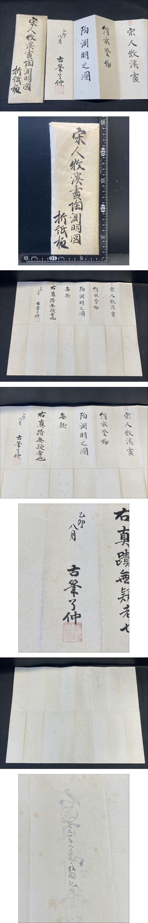 2-M70/2-ネコ 宋人牧渓責淘渕明図 折紙極? 古筆了仲 大正四年八月十九日 乙卯 34g 古書 書物 書 保証書? 江戸時代 古筆 收藏