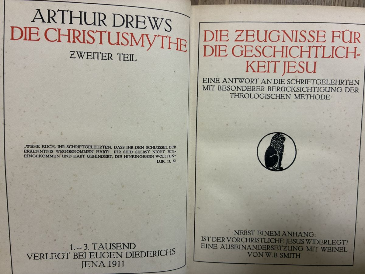 アルトゥル・ドレーヴス キリスト神話 Arthur Drews Die Christusmythe 2 bde. 洋書古書 收藏