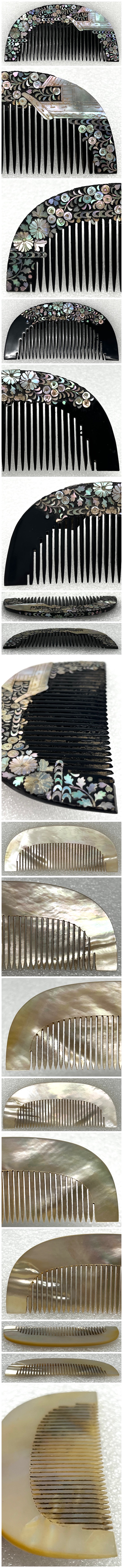 【鶴】アンティーク 螺鈿 貝 花尽 櫛 2点◯緒締・提げ物・東洋彫刻・彫刻・オブジェ・美術品・簪・根付・珊瑚・蒔絵・笄 A761 收藏