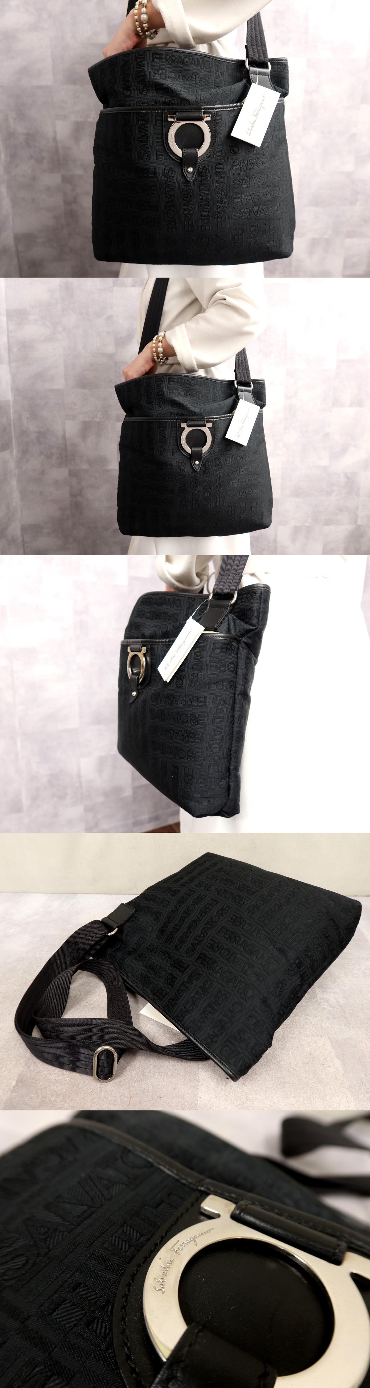 ●超美品●Salvatore Ferragamo フェラガモ●ガンチーニ●ナイロン カーフ レザー 本革●ショルダー バッグ●黒●SV金具●A4 収納●Js65833 收藏