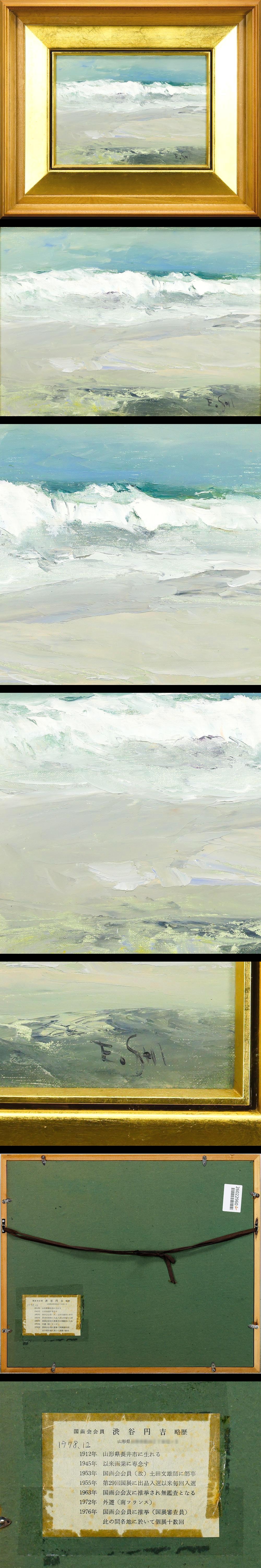 【真作】【WISH】渋谷円吉 油彩 4号 ◆白波が寄せる海辺 〇国画会会員 真下慶治と交流 渋谷円吉画集刊行 #26022960 收藏