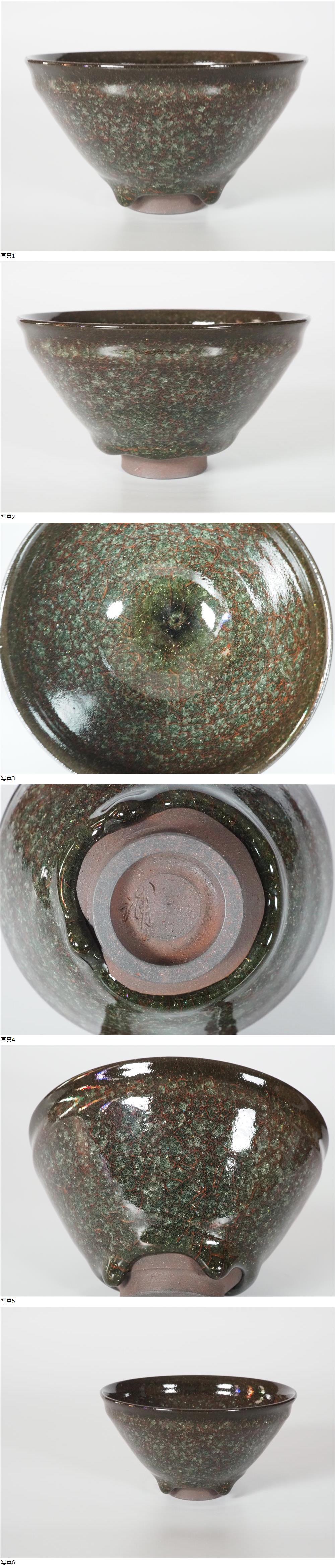 【GK】浦口雅行 海松瓷黒燿砕茶碗 茶道具 共箱 共布 栞 無傷 本物保証! 收藏
