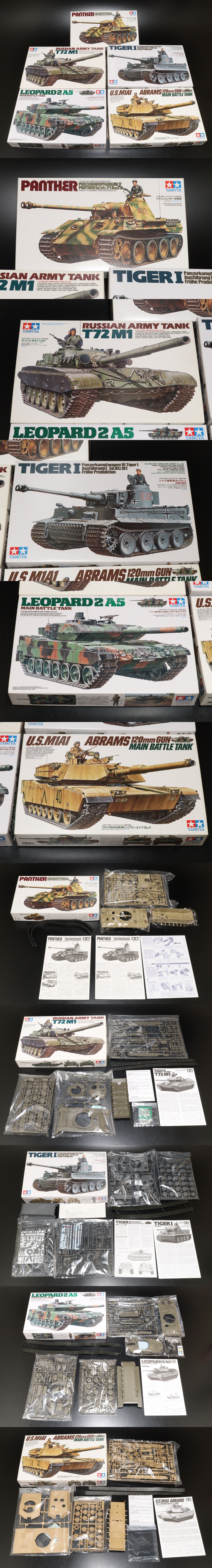 P 未組立 TAMIYA タミヤ 戦車 プラモデル 5点 ドイツ重戦車タイガーI 旧ソビエト戦車T72M1 アメリカM1A1戦車ビッグガン・エイブラムス 他 收藏