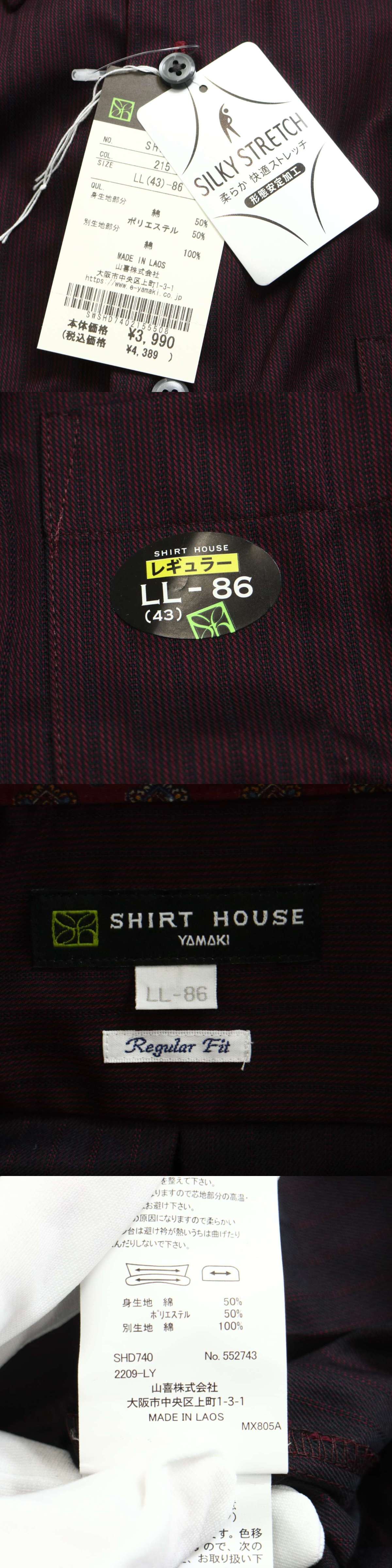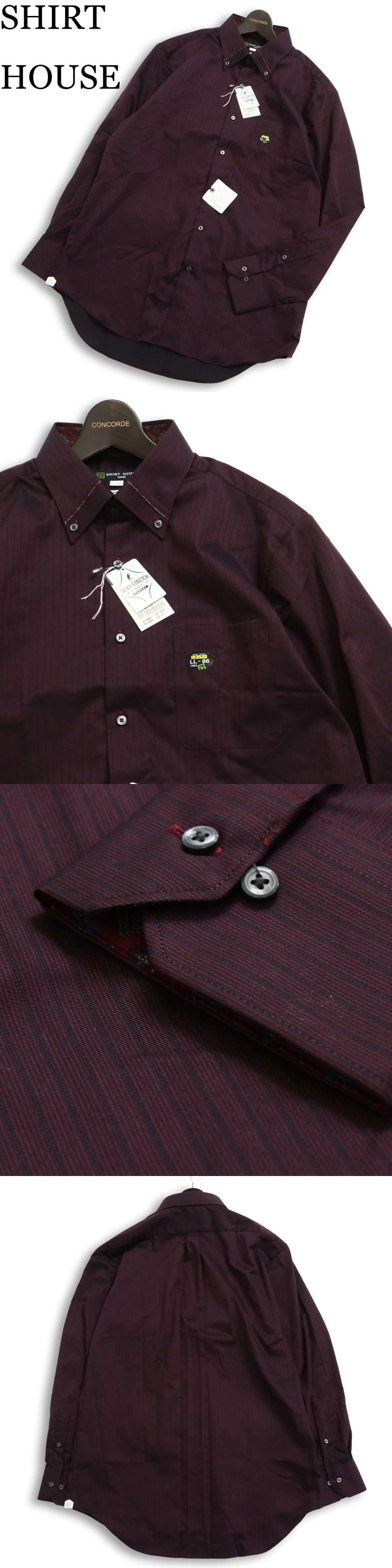 【新品 未使用】 SHIRT HOUSE シャツハウス 山喜 通年★ 長袖 ストライプ ボタンダウン シャツ Sz.LL メンズ 大きいサイズ 收藏