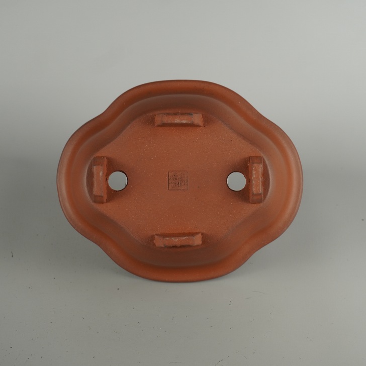 盆栽鉢 常滑 壱興造記 渡辺一弘 小型 長辺 約 19.5cm 木瓜鉢 縁付 雲足 泥物 現品 新品 收藏