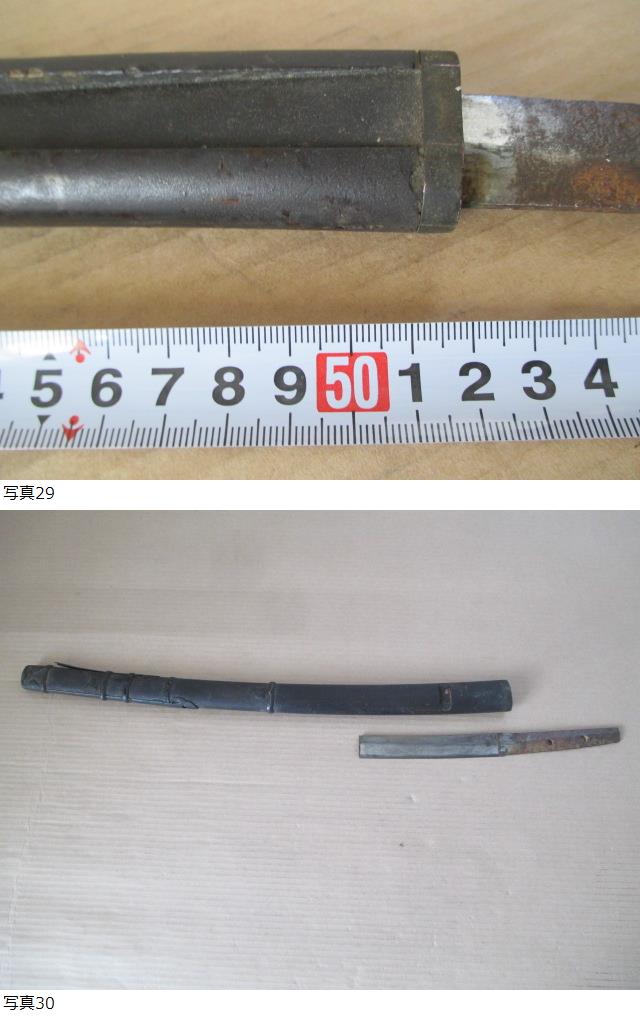 ■TA3507■古い拵え鞘と残欠刃/刀身15cm未満/鞘の長さ52cm/刀剣類登録証不要/半太刀造り/傷み有り/ジャンク扱い 收藏
