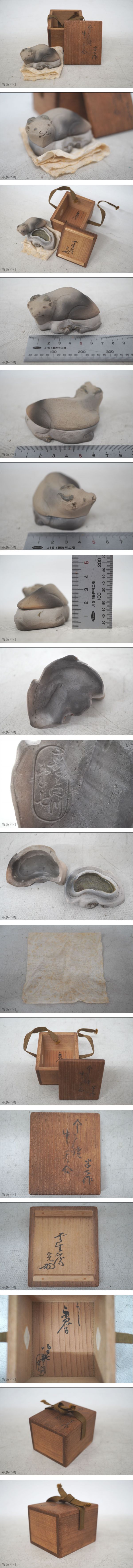 [3-131] 白井半七 寿三田川 今戸焼 香合 牛 うし 共箱 共布 陶磁器 香道具 骨董 古美術 時代物 アンティーク Antique | |||