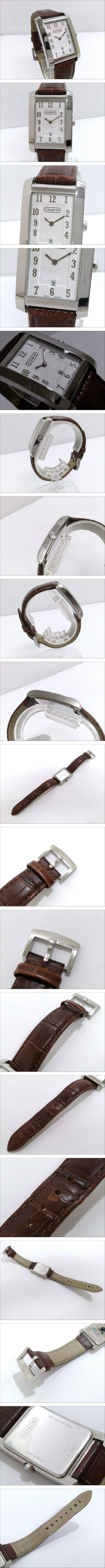 COACH コーチ シグネチャー デイト 0242 クォーツ 腕時計/リストウォッチ/スクエアフェイス/2針/ホワイト文字盤/レザーベルト/02SH041405 收藏