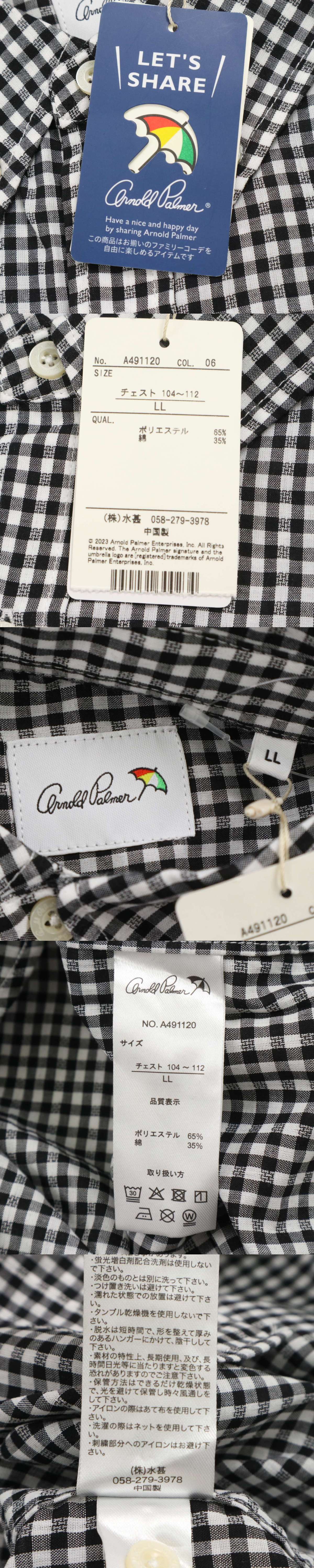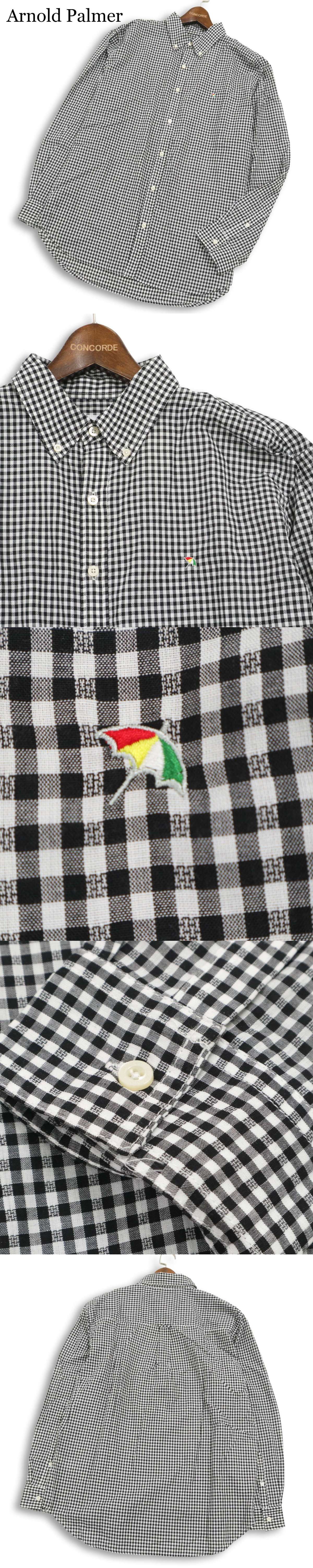 【新品 未使用】 Arnold Palmer アーノルドパーマー 通年★ 長袖 ギンガムチェック ボタンダウン シャツ Sz.LL メンズ 黒 收藏