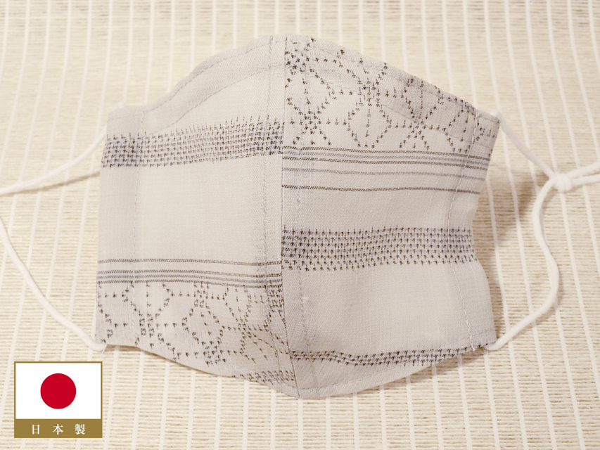 【和装用マスク】麻葉縞文 夏紬 紗紬 紗絣 夏マスク マスクカバーノーズワイヤー入り 日本製ハンドメイド TAMC03010風楽 |