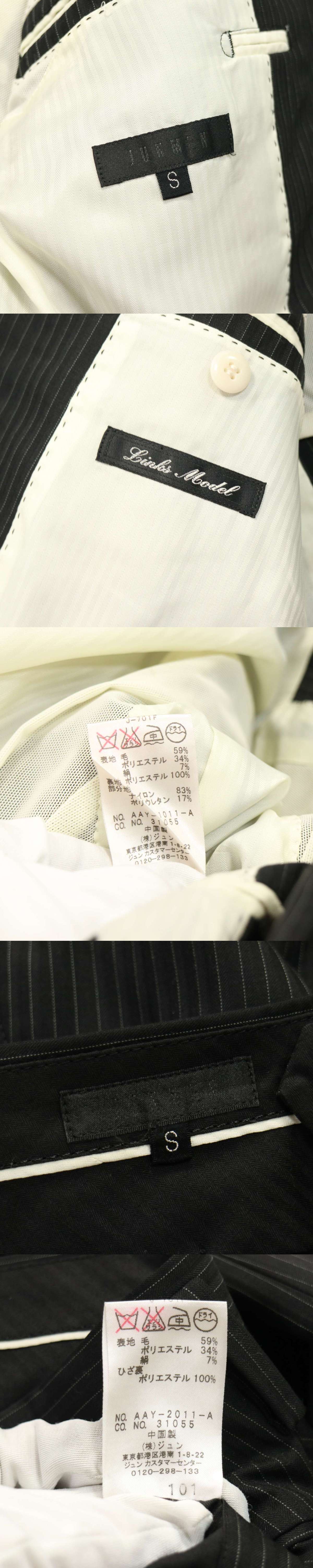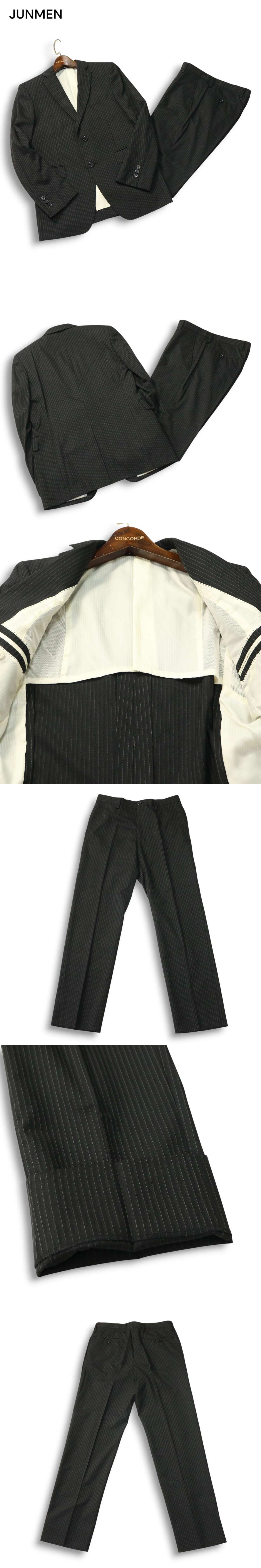 JUNMEN ジュンメン 通年 背抜き★ ストレッチ ストライプ セットアップ スーツ Sz.S メンズ 黒 收藏
