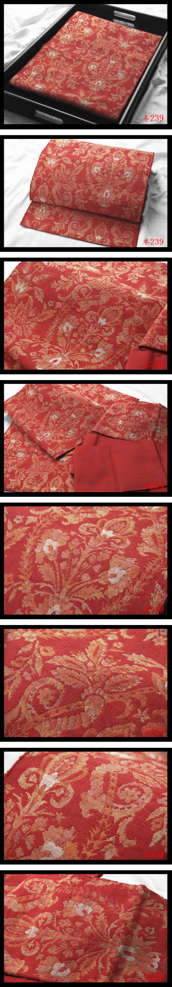 【ネ239】厳選美品 紬 唐花文 茜色地 気品豊かに 正絹高級美術名古屋帯 ◇検◇簪着物袋帯名古屋帯帯締め 收藏