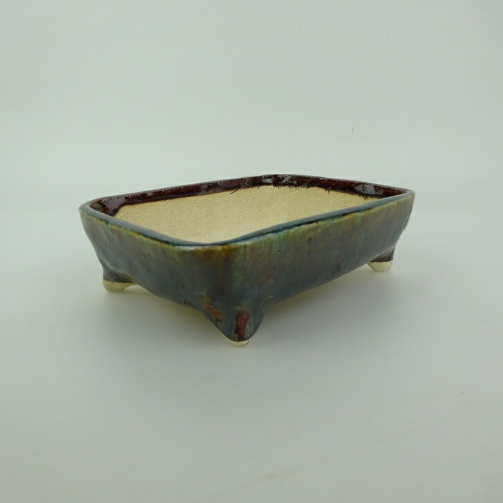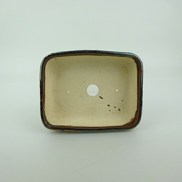 盆栽鉢 ゆうき祥石 小型 長辺 約 13.1cm 長方鉢 釉薬 現品 新品 收藏