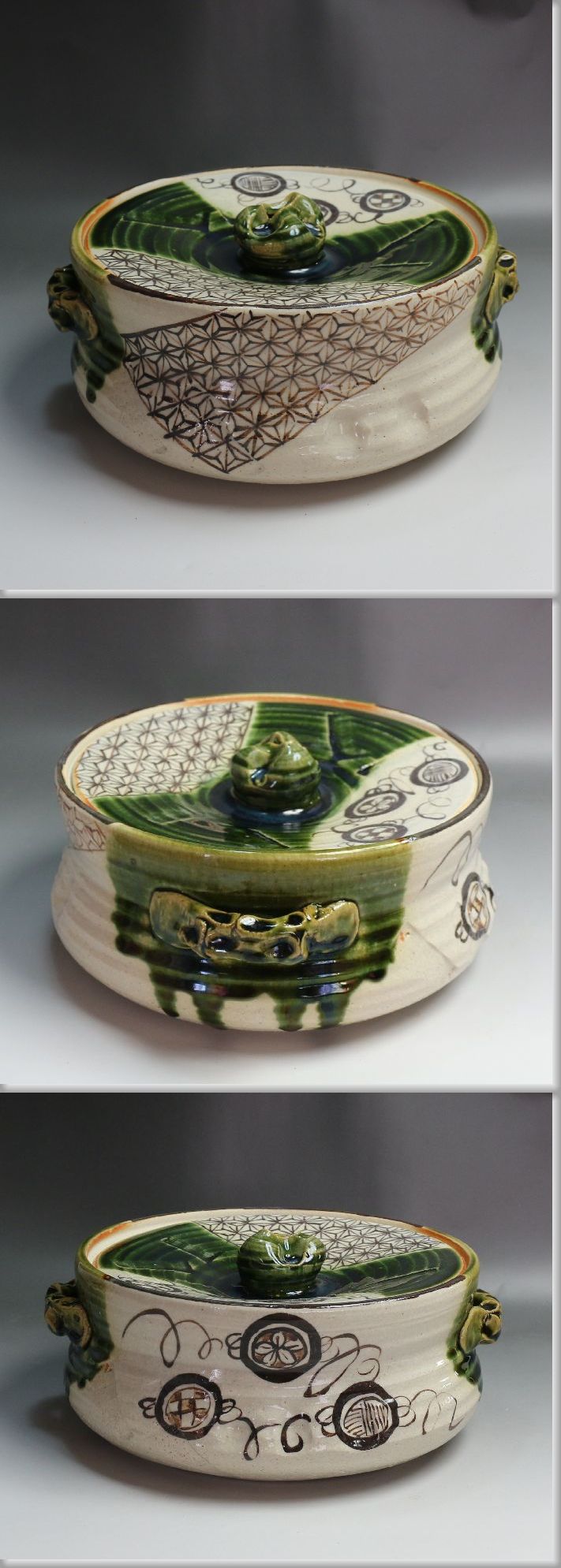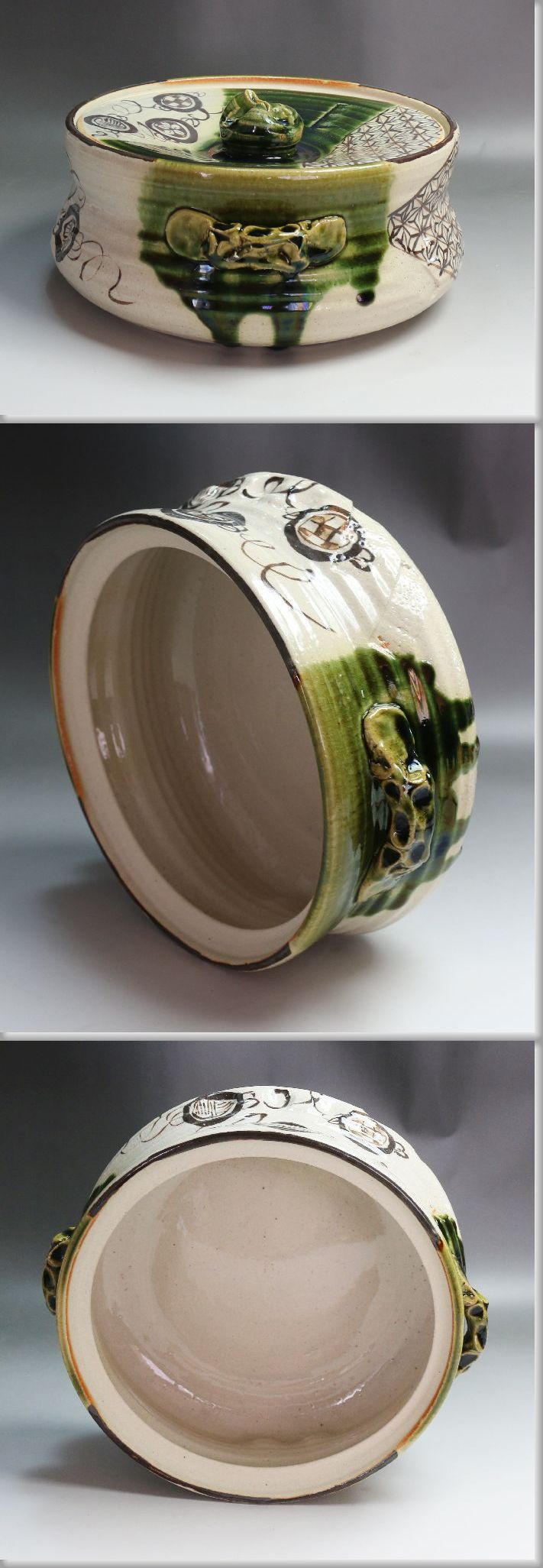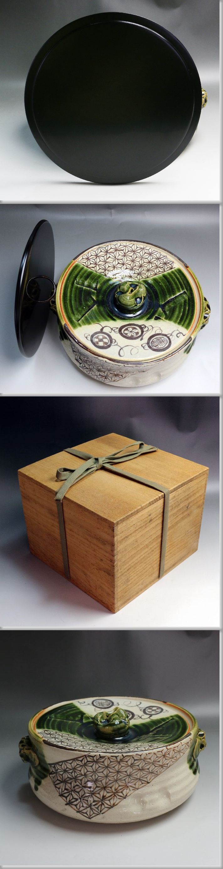■■ 茶道具 美濃焼 在銘 織部平水指 共蓋 塗蓋 桐箱 ■■