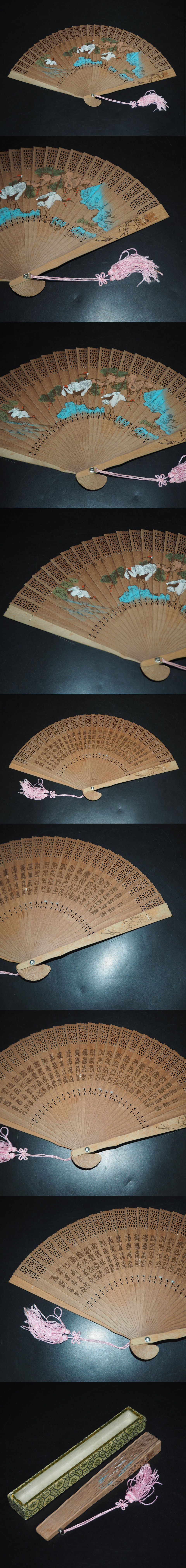 【金富士】時代物 透かし彫り 松鶴図扇子 共箱 中国古玩骨董 收藏