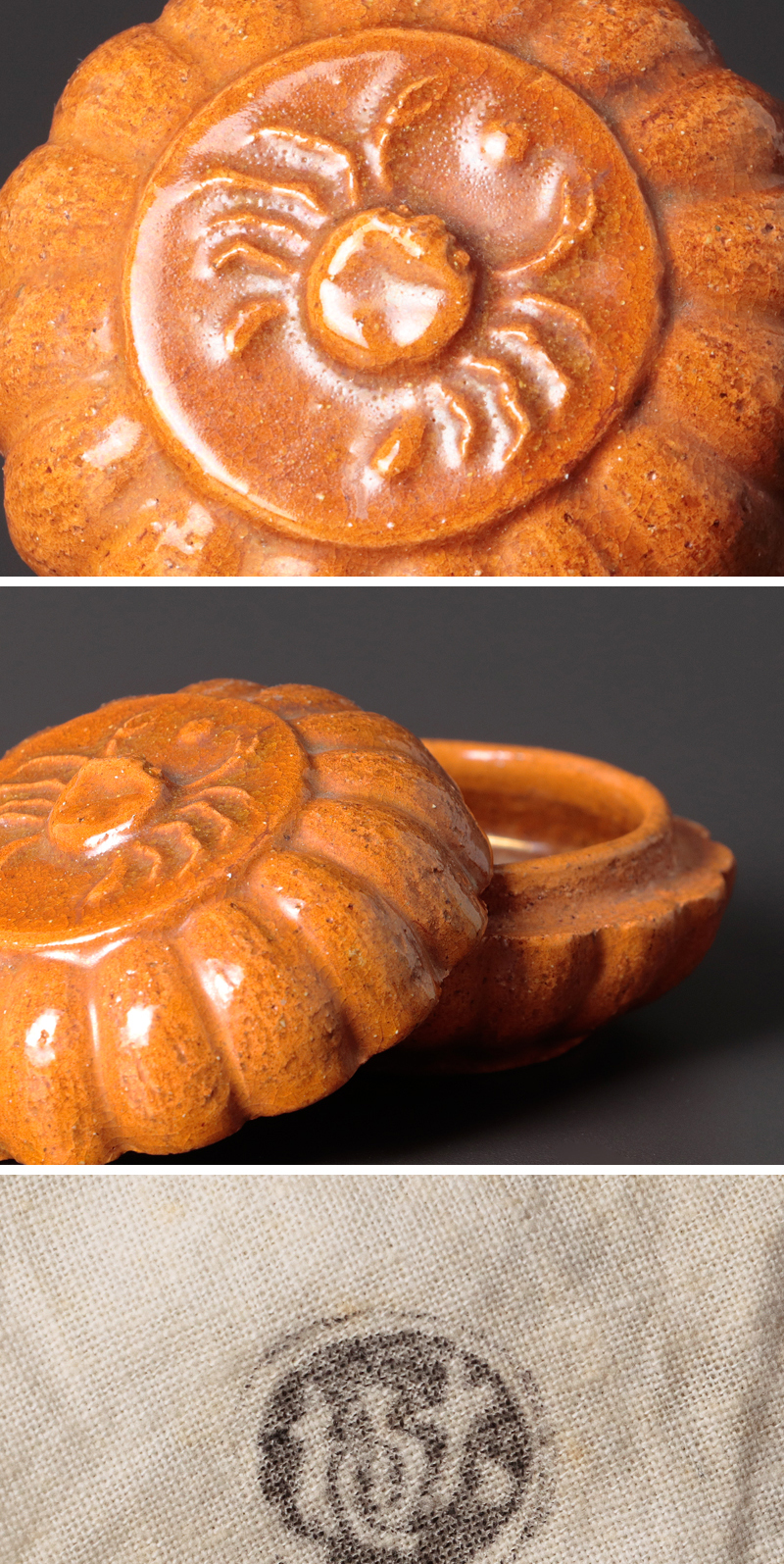 ★【古美味】九代大樋長左衛門 菊蟹香合 茶道具 保証品 F4wT 收藏
