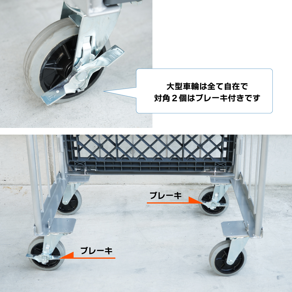 ●底板は樹脂製なので軽量かつ錆びません ●折りたたみ時にはコンパクトになります ●車輪は全て自在で対角2個はブレーキ付となります ●複数個の販売もできます |