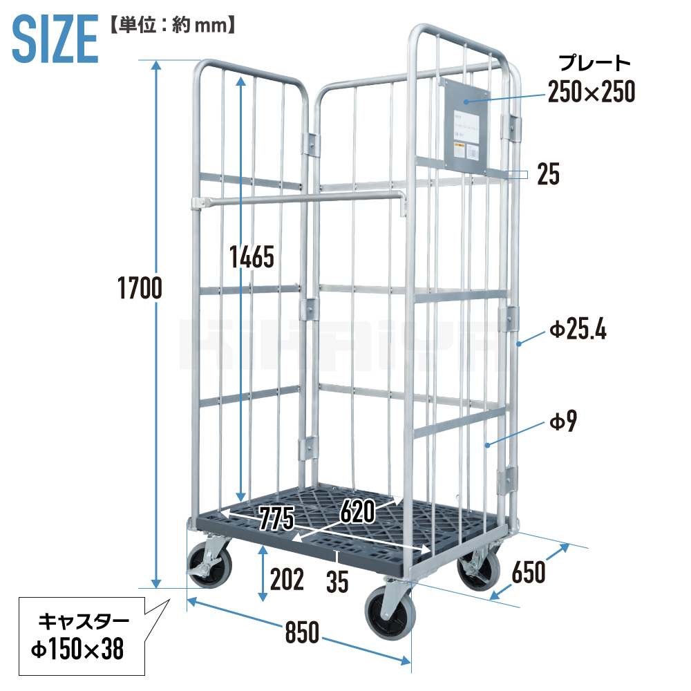 | キャスター径 | 150×38mm(汎用ゴム) |