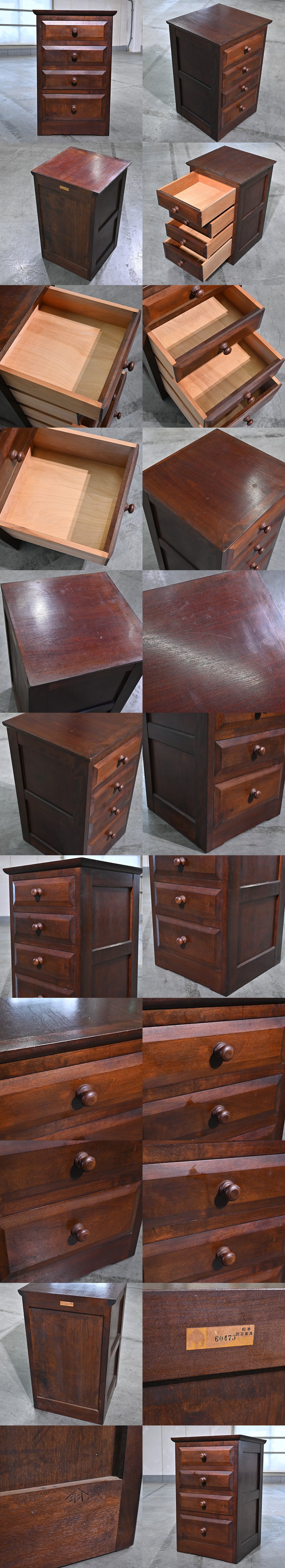 松本民芸家具 14万「T型脇棚」サイドチェスト 樺無垢材 収納 引き出し 4段 伝統 リビング 書斎 事務 カバザクラ バーチ_北海道 九州 收藏