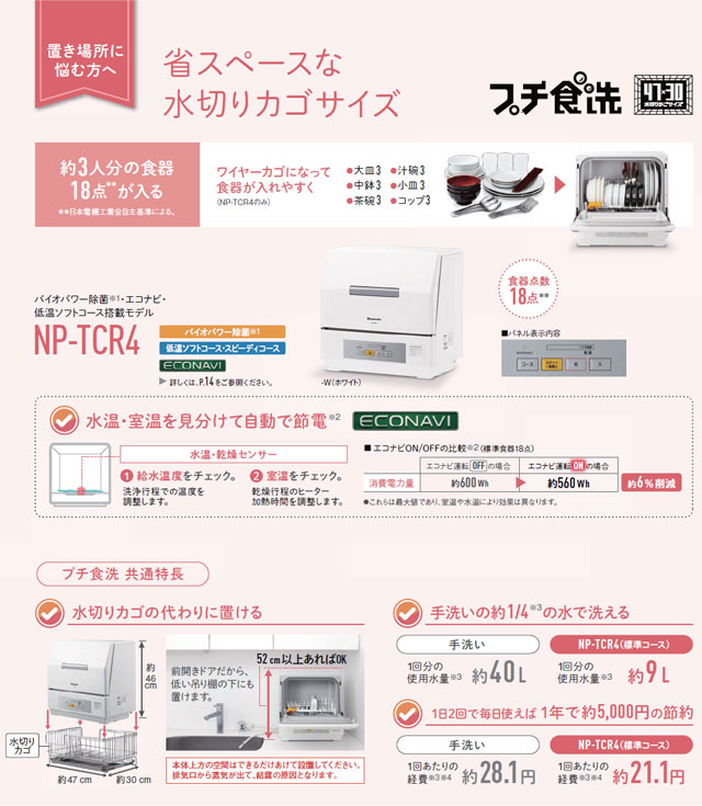 | メーカー・型式 | パナソニック / プチ食洗 NP-TCR4-W | |