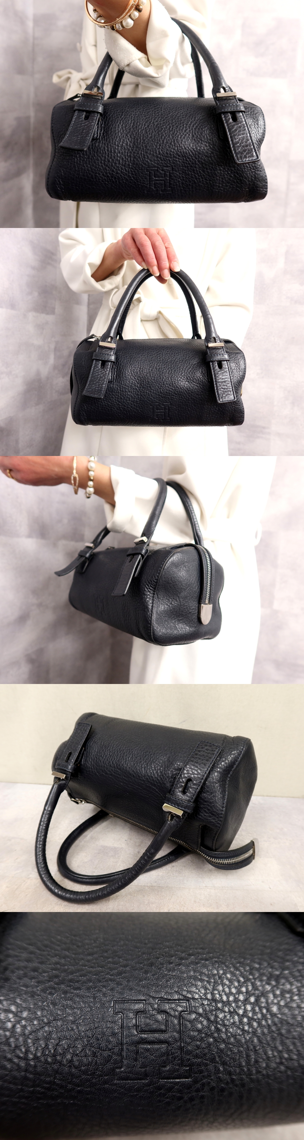 ●超美品●HIROFU ヒロフ●ロゴ型押し●カーフ レザー 本革●ハンド バッグ●ネイビー●シルバー金具●腕掛け●収納 かばん●Js64180 收藏