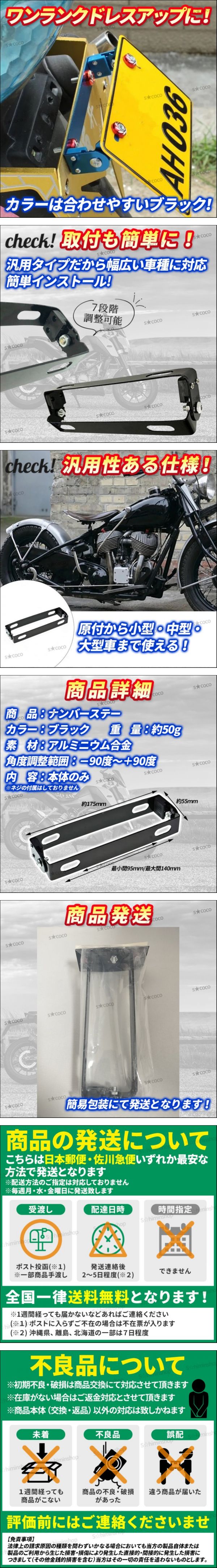 | ナンバープレート ステー バイク 角度調整ステー 汎用 ナンバーステー プレート 可変式 ホルダー ブラケット 原付 オートバイ ブラック ② | ||