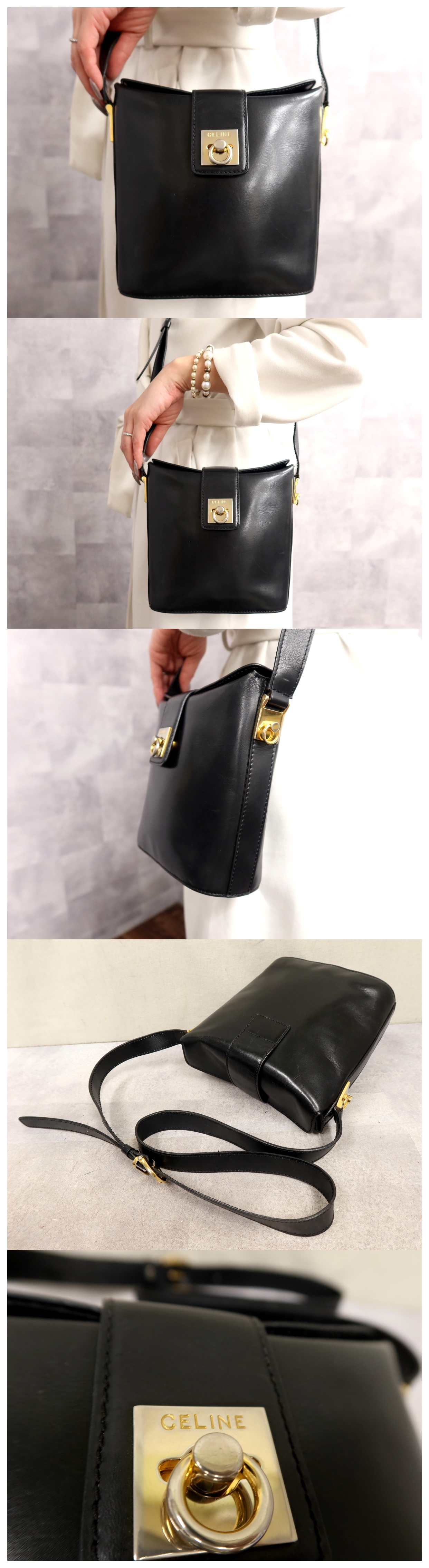 ●超美品●CELINE セリーヌ●ガンチーニ●カーフ レザー 本革●ショルダー バッグ●黒●ゴールド金具●ヴィンテージ●肩掛け●Js64666 收藏