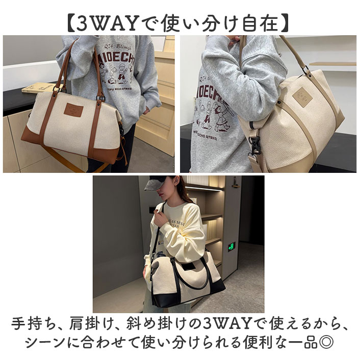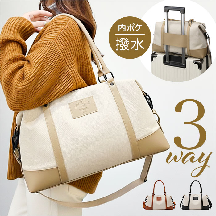 | 商品説明 | ・・【多機能ボストンバッグ】 ・旅行にも便利、大容量で収納力抜群のボストンバッグ。 ・【3WAYで使い分け自在】 ・手持ち、肩掛け、斜め掛けの3WAYで使えるから、シーンに合わせて使い分けられる便利な一品◎ ・【キャリーオンで移動楽々】 ・キャリーケースに通せるから、旅行時の移動もスマートに負担を軽減できる〇 ・【形を変えられるベルト付き】 ・サイドのベルトで形を調整できるから、荷物の量に合わせて使える♪ ・【収納上手な内側ポケット】 ・内側にフリーポケットとオープンポケット2つがあるから、小物の整理整頓がしやすい! ・【雨の日も安心】 ・内側のファスナーポケット内は撥水加工が施されているから濡れたものも入れられる。 |