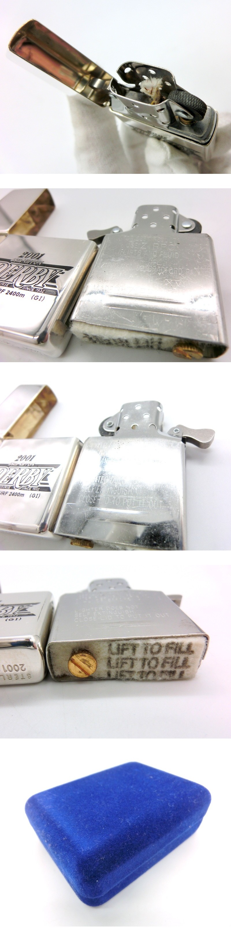 Zippo ジッポー STERLING シルバー DERBY ダービー 2001年製 ライター 銀製 ベロアケース付き 競馬 ライター 喫煙具 1円~ W0183c 收藏