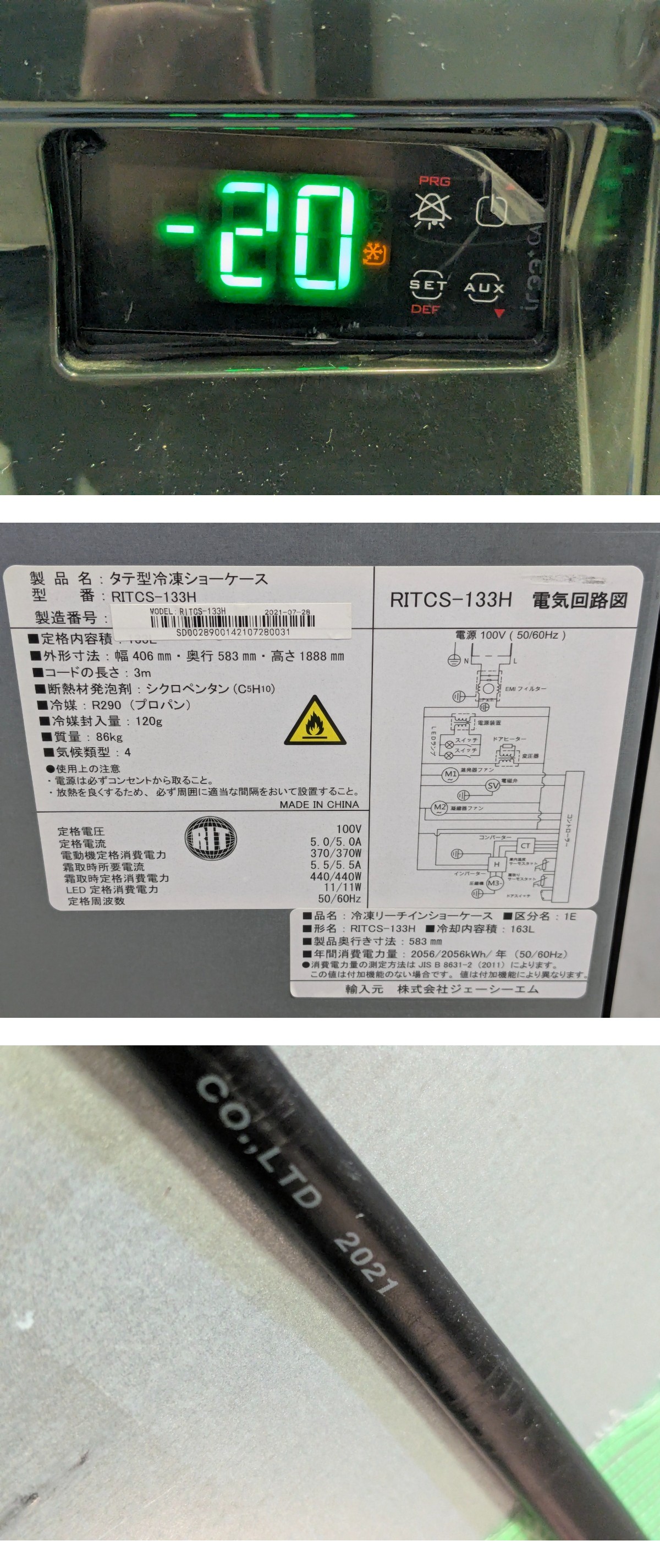埼玉発 JCM タテ型冷凍ショーケース RITCS-133H 2021年製 86kg TRy mm(8) | |||||||||||||||||||||||||||||||||||||||||||||