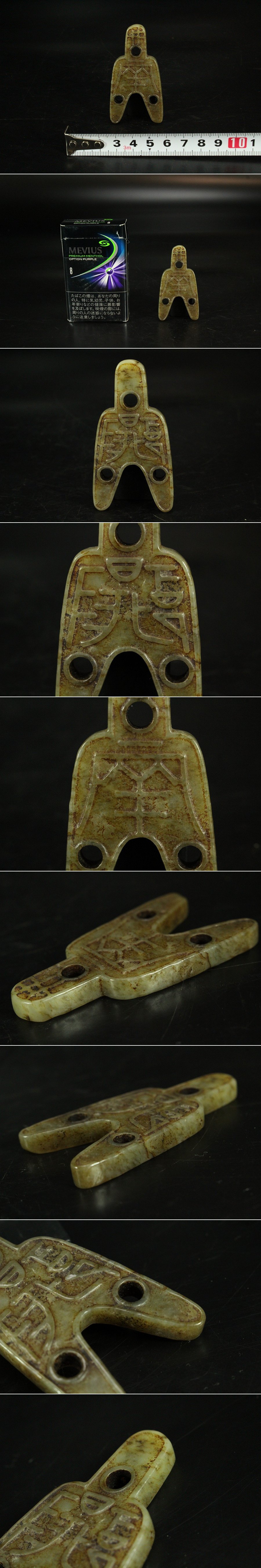 【金閣】中国美術 玉石刻 古代 銭 飾り 3.5cmx6.5cm 旧家蔵出 送料無料(LC551) 收藏