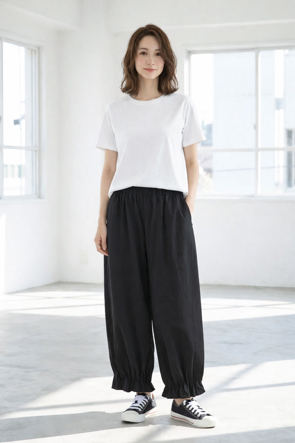足元に咲く、大人の遊び心。シルエットで魅せるデザインパンツ。