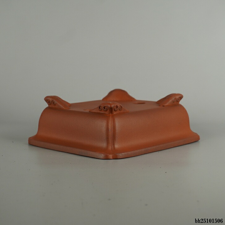 盆栽鉢 常滑 壱興造記 渡辺一弘 小型 長辺 約 18.2cm 長方鉢 縁付 隅入 雲足 泥物 現品 新品 收藏