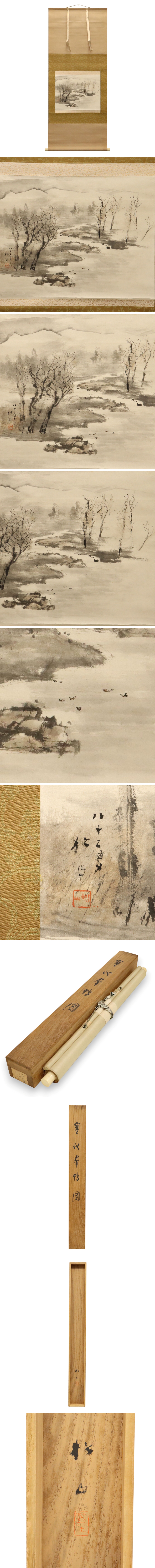 真作保証 藤井松山 寒池群鴨の図 紙本 共箱 備後 掛軸 書画 骨董品 美術品 4234lqN 收藏