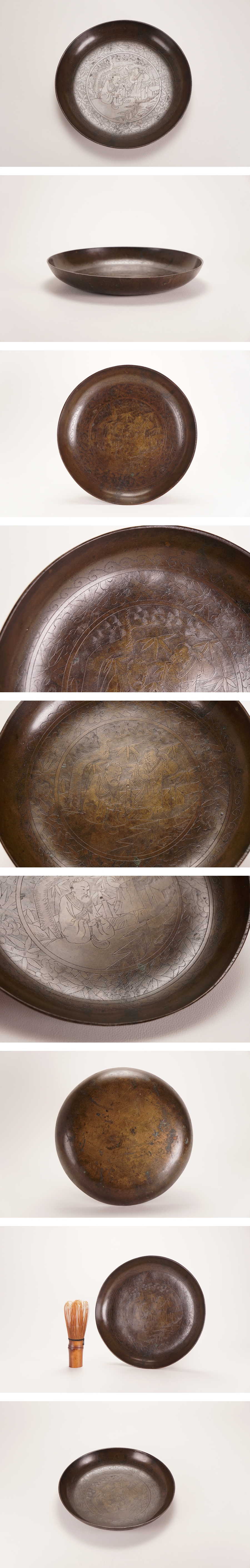 【茶の器特集】NS36◆時代 唐物 古銅 人物松竹梅文 彫刻 銅皿◆仏教美術 時代物 茶盆 急須盆 金工 うぶ 買取品 蔵出し 売り切り 古美術