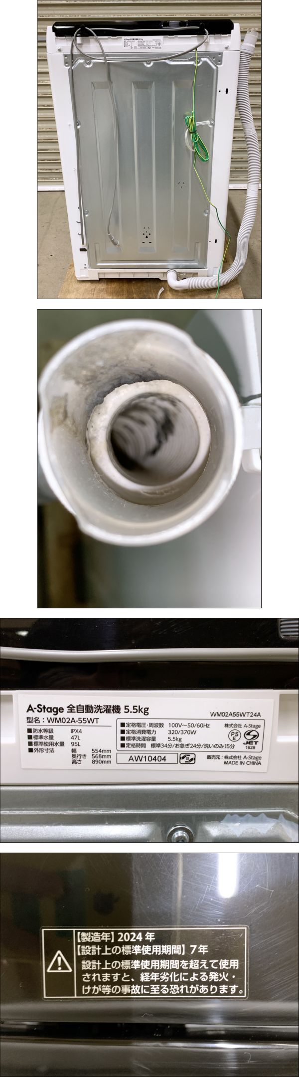 中古 動作OK 全自動洗濯機 A-Stage WM02A-55WT 5.5Kg 2024年製 一人暮らし 単身 家庭用 洗濯機 引取歓迎 茨城県常陸大宮 0407こ5 H 220 收藏