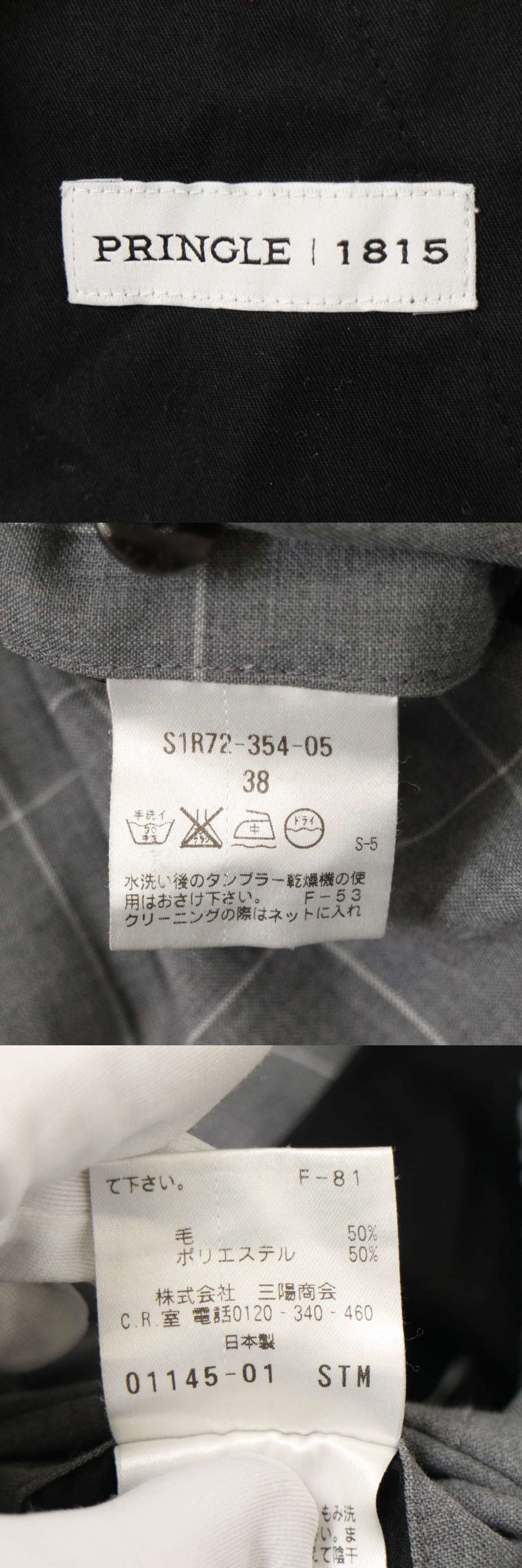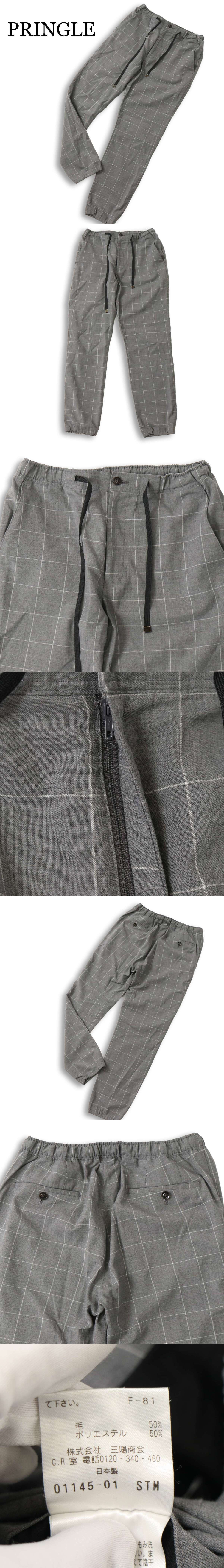 Pringle プリングル 通年★ ウィンドウペン チェック イージー トラウザー ジョガー パンツ 日本製 Sz.38 メンズ グレー 收藏
