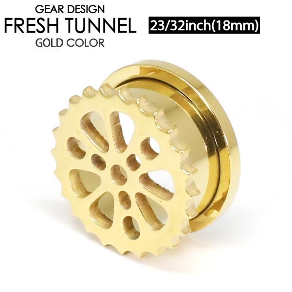 フレッシュトンネル ギア3-GD 23/32inch(18ミリ) ゴールド カラーコーティング サージカルステンレス デザイン ボディーピアス ロブ 18mm