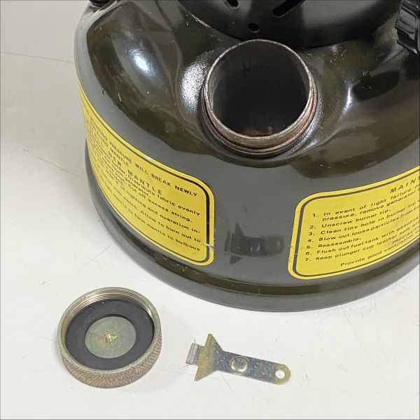 | ご覧いただきありがとうございます。 コールマン社製のアメリカ軍規格 252A型ランタンです。 252A型ランタンは1944年頃からランタンメーカー各社に製造委託されミリタリー用としてアメリカ軍に納入されたモデルです。 軍用品として戦場での利用を想定し、色々な工夫がされています。 ・割れた部分だけ取り換えられる4分割グローブガラス ・替えマントル等がタンク内に収納できる ※ファンネル(漏斗)は付属していません。 ダメージがありますので、写真で状態の確認をお願い致します。 ・ベンチレーターの変形・キズ ・タンク部分のキズ・汚れ ・ホヤガラスの端の細かい欠け 写真では分からないような細かいキズ等もある点をご了承下さい。 ★点灯確認は行なっておりません。 現状でのお渡しにご了承のうえ、ご自身でメンテナンス可能な方のご入札をお待ちしてます。 【サイズ】 高さ 約39cm | ||