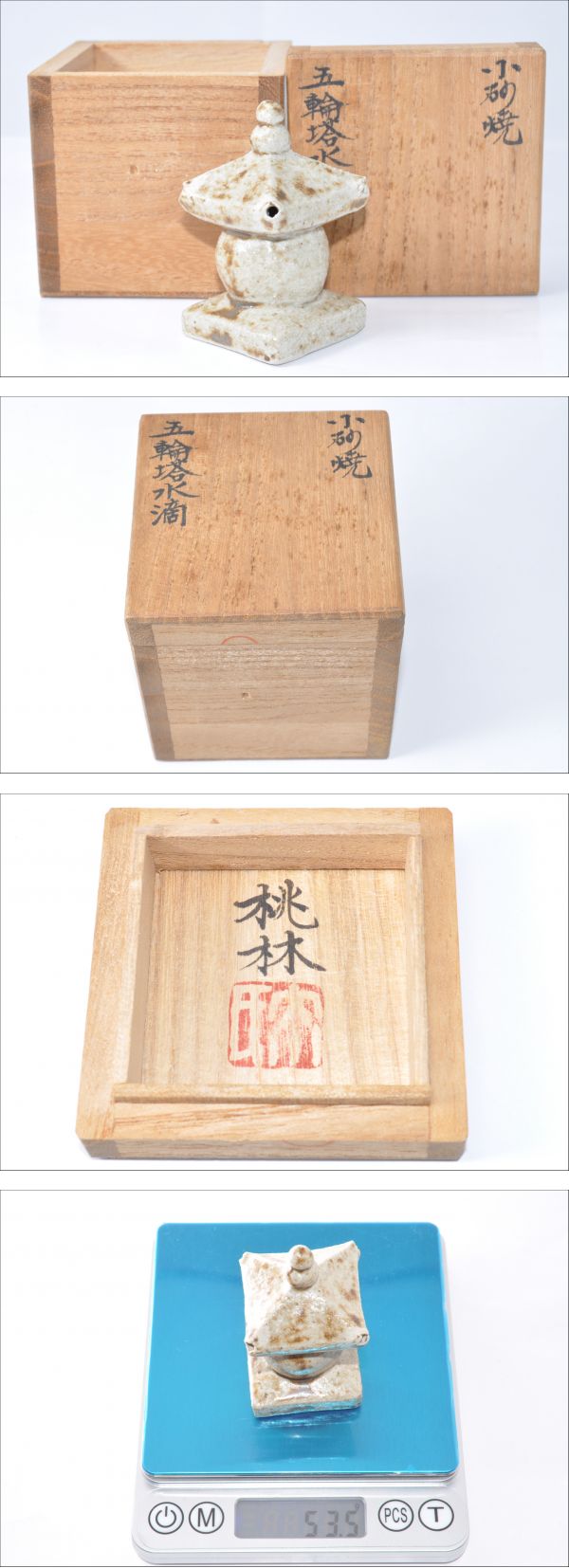 ☆珍しい一品☆ 水滴 五輪塔 桃林 小砂焼 書道具 高さ約6.3cm 重さ約53g 木箱付き の出品です。