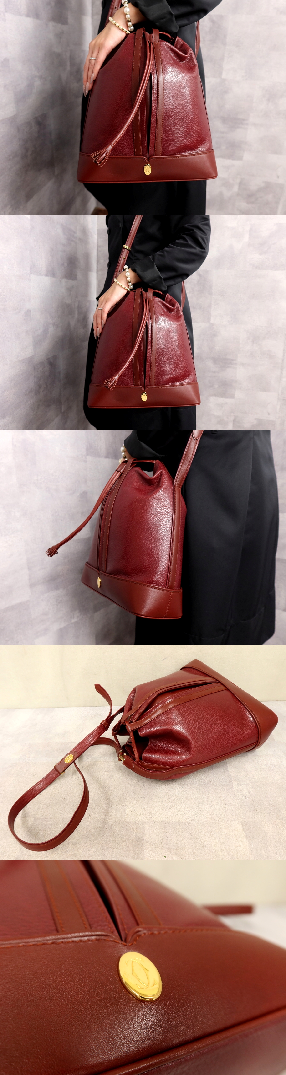 ●超美品●Cartier カルティエ●マスト●トリニティ●カーフ レザー 本革●巾着 ショルダー バッグ●ボルドー●ゴールド金具●B5●Js62494 收藏