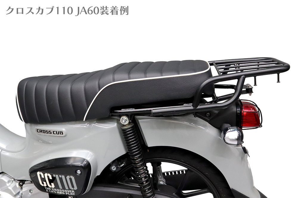 | スーパーカブ JA59/JA60/JA44/JA10/AA09/AA04/クロスカブ(JA45/JA10/AA06)用のダブルシートです。 純正リアキャリア併用タイプ。簡単に装着できます。 このシートを車輌に取り付けるにあたりまして別途必要な部品はありません。 |