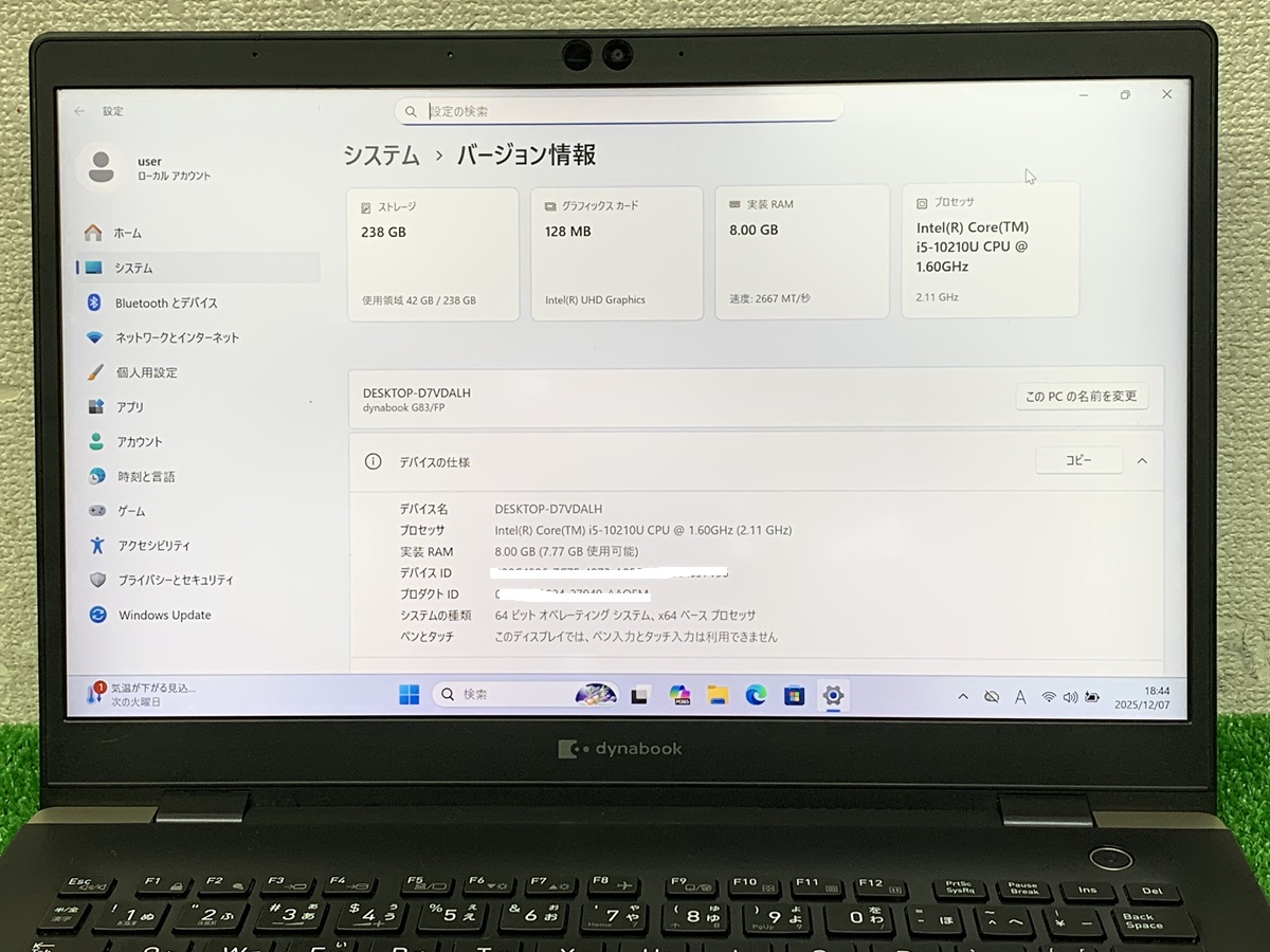Toshiba dynabook g83/fp i5第10世代 ノートPC Core i5-10210U 東芝ノートパソコン メモリ8GB SSD256GB カメラ 13.3 フルHD laptop pc